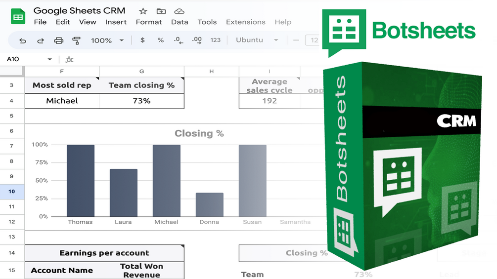 Manage your opportunities and sales pipeline in a Google Sheets CRM.